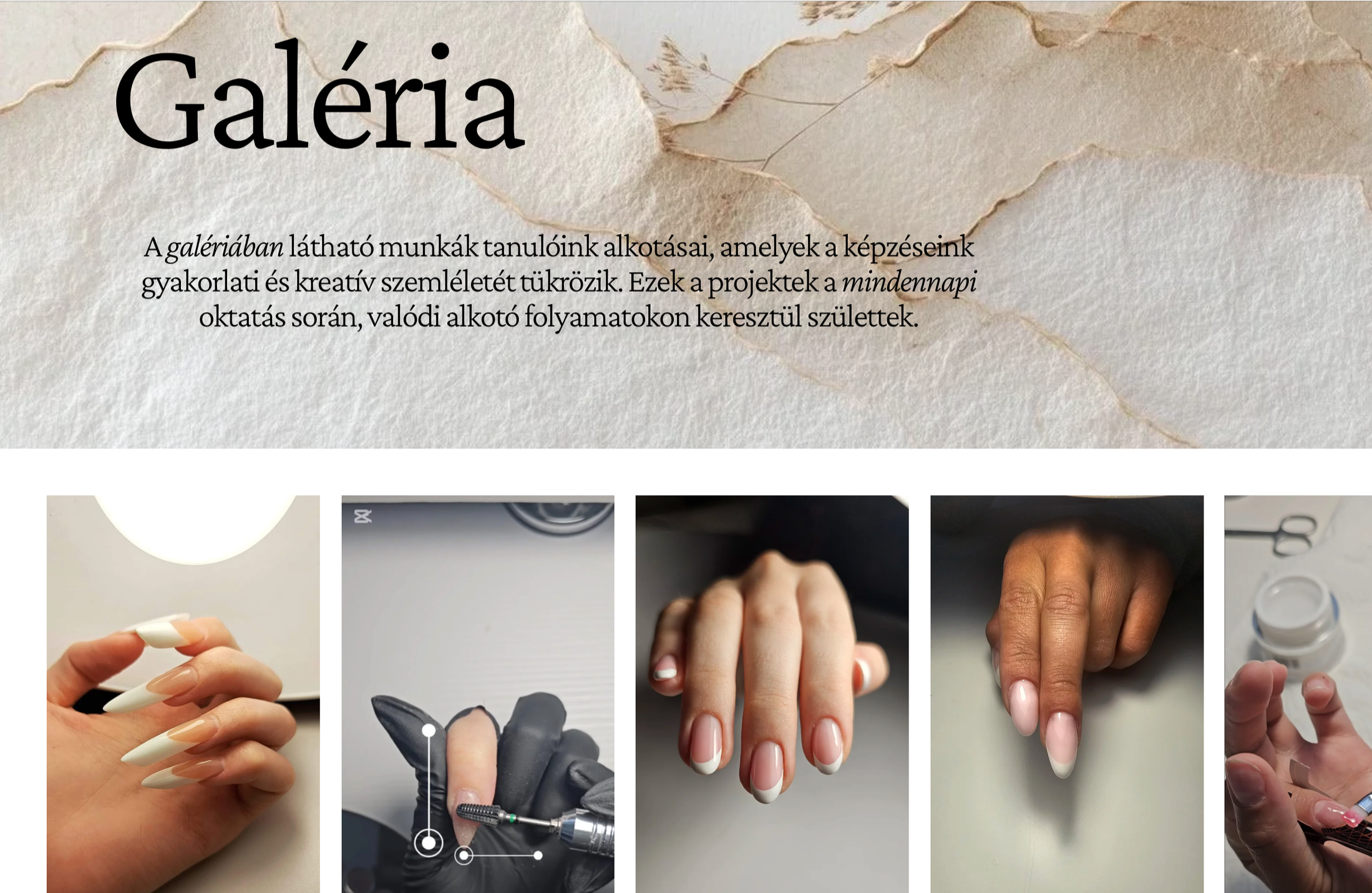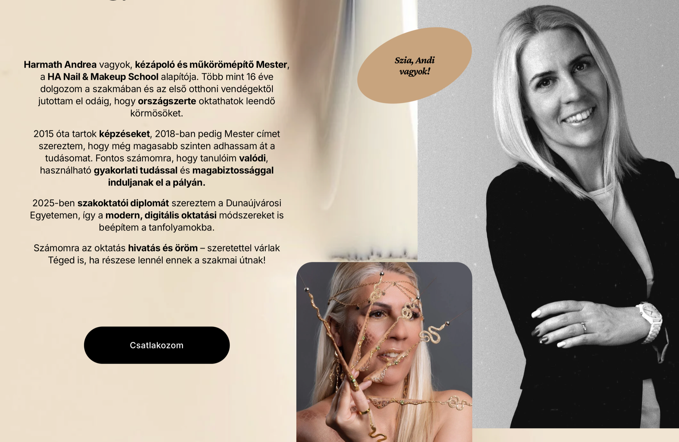 HA Nail & Makeup School“Evelinnel dolgozni igazi megkönnyebbülés volt. A weboldalam nemcsak gyönyörű és letisztult lett, hanem pontosan azt a hangulatot adja vissza, amit a márkám képvisel. Evelin gyors, megbízható, önállóan gondolkodik, és minden részletre figyel. Ritka az ilyen partner aki egyszerre kreatív, precíz és emberileg is öröm vele együttműködni.